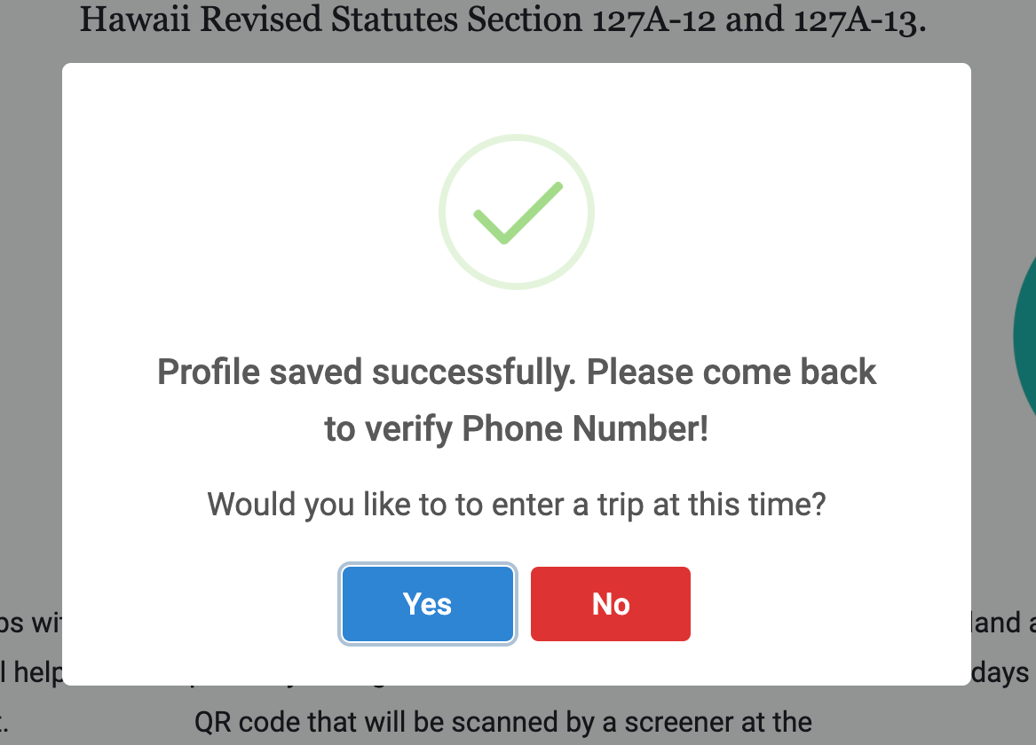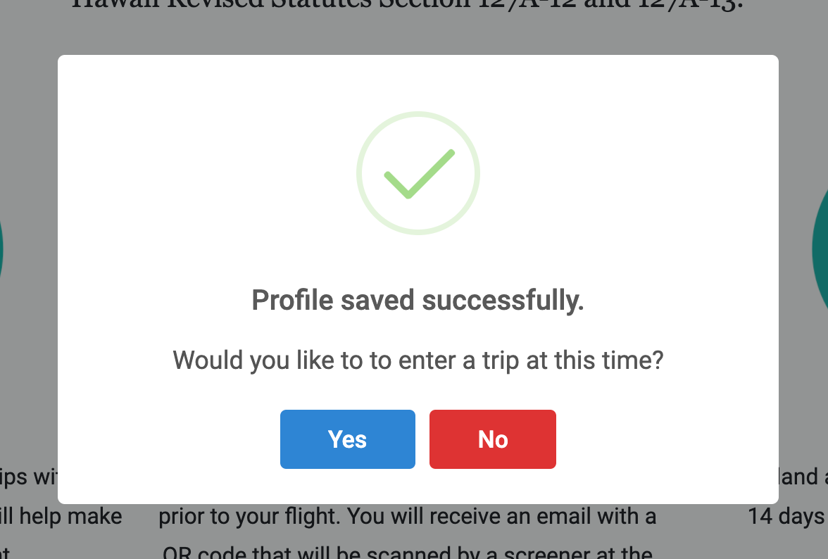 “Profile saved successfully.Would you like to enter a trip at this time?”