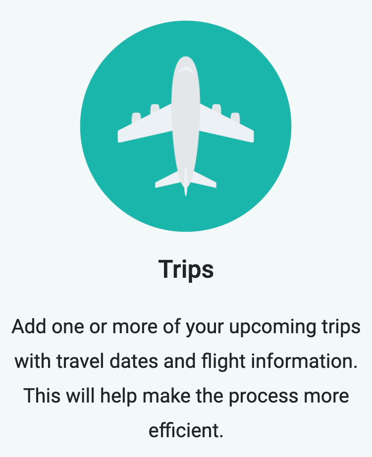 Add one or more of your upcoming trips with travel dates and flight information.