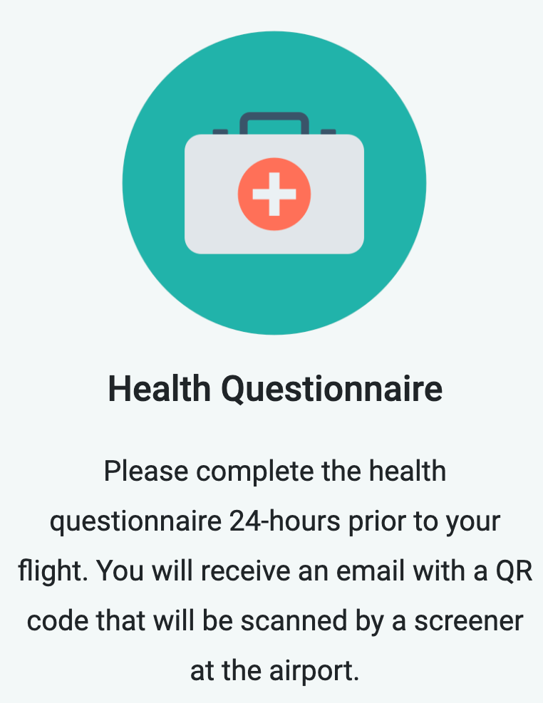 Please complete the health questionnaire 24-hours prior to your flight.