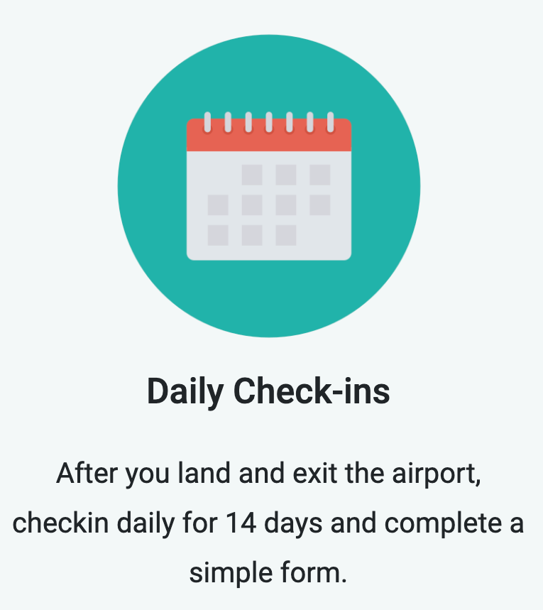 After you land and exit the airport, check in daily for 14 days and complete a simple form.